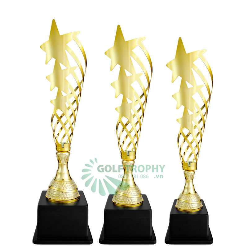 – Cúp kim loại cắt laser ngôi sao màu vàng