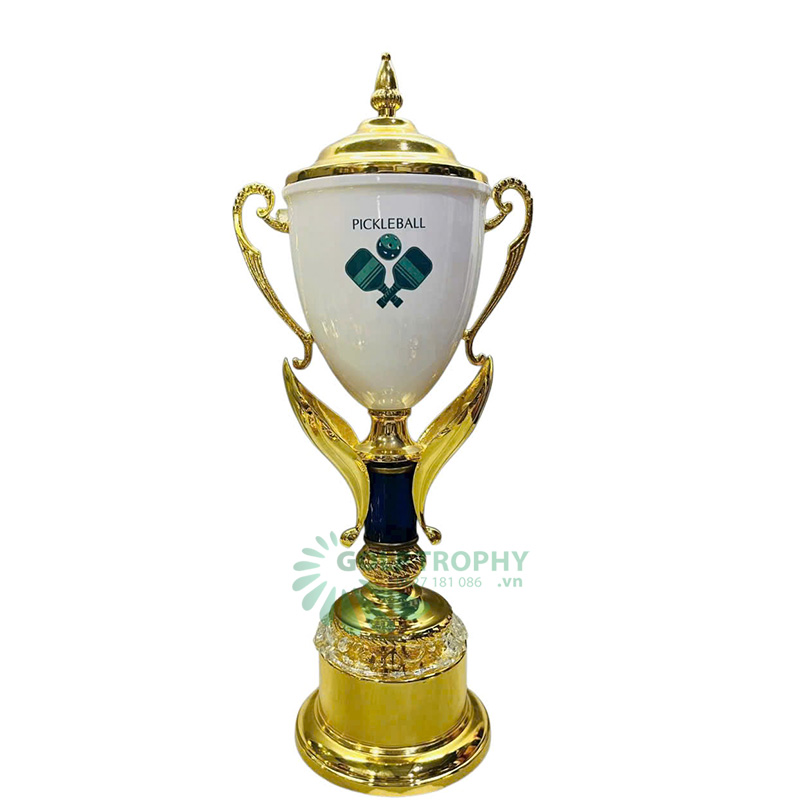 - Cúp pickleball kim loại màu vàng – trắng (gắn được đỉnh pickleball) – Chất liệu: kim loại– Màu sắc: vàng - trắng
