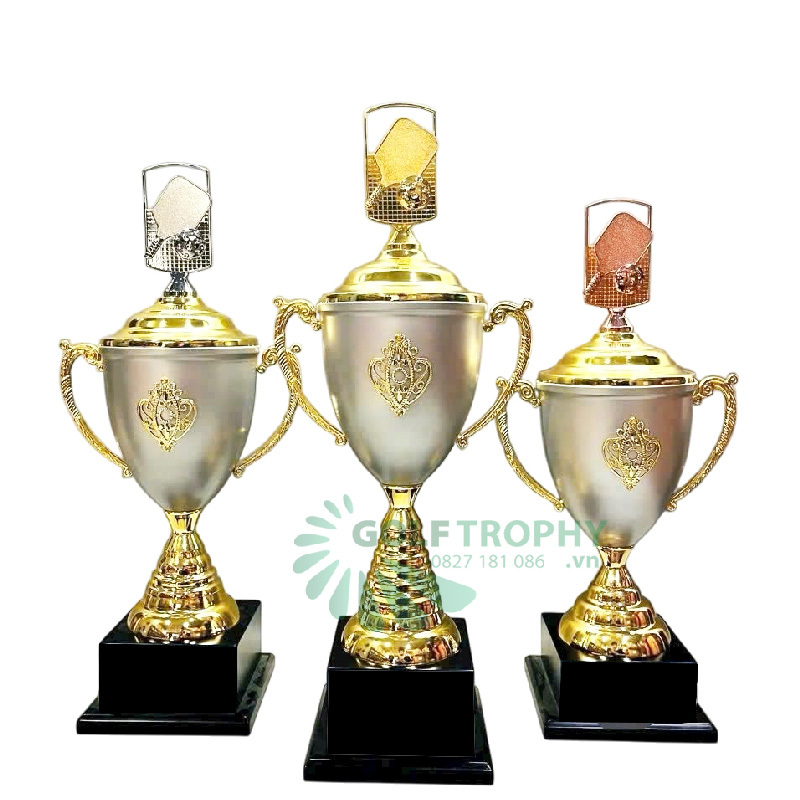 – Cúp Pickleball kim loại màu xám đỉnh pick vàng - bạc - đồng– Chất liệu: kim loại– Màu sắc: vàng - xám