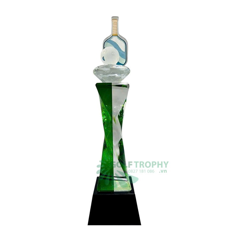 – Cúp Pickleball pha lê, thân màu xanh gắn vợt pickleb– Chất liệu: Pha lê – Màu sắc:xanh