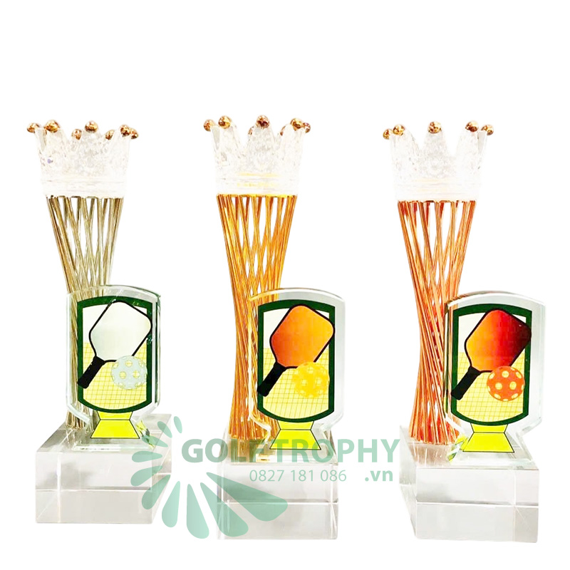 Cúp Pickleball pha lê thân kim loại, bóng pickleball 3D - PIC-1117